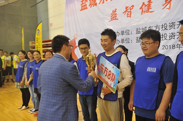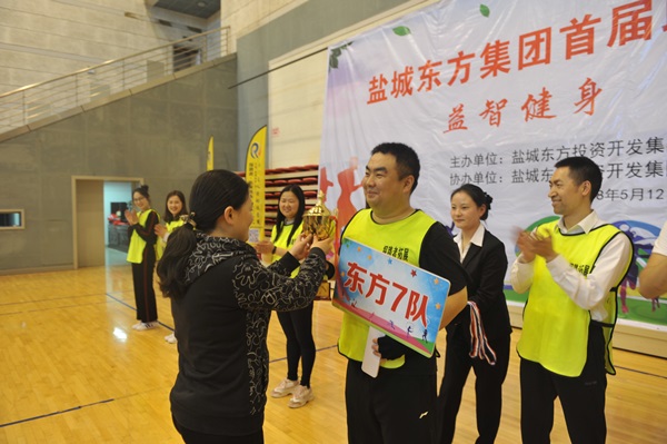 經過一個下午的比賽,選手們發(fā)揮了運動技巧,賽場上妙趣橫生,不斷掀起比賽熱潮,吶喊助威聲浪不斷,平日工作嚴謹認真的員工們活力充沛,熱情澎湃。經過團結、緊張、熱烈、有趣的激烈角逐,決出了冠亞季軍三個團隊獎項。東方4隊、東方8隊、東方7隊分獲團體總分一、二、三名。集團副總經理吳將、集團黨委委員華小軍、集團人力資源管理部部長唐曉麗分別為獲獎團體冠亞季軍頒發(fā)了獎杯及獎牌。