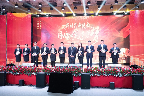 此次聯(lián)歡會分為年度相關(guān)工作表彰和文藝節(jié)目演出兩部分。東方集團黨委副書記、副董事長、總經(jīng)理王旭東宣讀2018年表彰決定。集團領(lǐng)導(dǎo)為“金點子”征集、企業(yè)理念征集、2018年度先進獲獎集體及個人頒獎。