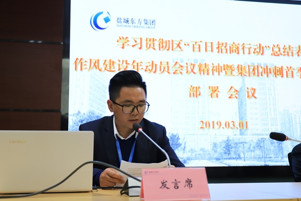 3月1日,鹽城東方集團(tuán)召開學(xué)習(xí)貫徹區(qū)“百日招商行動(dòng)”總結(jié)表彰、作風(fēng)建設(shè)年動(dòng)員大會(huì)精神暨集團(tuán)沖刺首季“開門紅”部署會(huì)議。集團(tuán)黨委書記、董事長張振國傳達(dá)學(xué)習(xí)區(qū)“百日招商行動(dòng)”總結(jié)表彰會(huì)議精神,全面部署2019年重點(diǎn)工作,號召和動(dòng)員集團(tuán)上下大干當(dāng)前、力奪首季開門紅,推動(dòng)集團(tuán)高質(zhì)量發(fā)展走在蘇北蘇中同類國企前列。集團(tuán)副黨委書記、副董事長、總經(jīng)理王旭東主持會(huì)議。集團(tuán)領(lǐng)導(dǎo)班子全體成員,各部門、子公司中層以上人員參會(huì)。