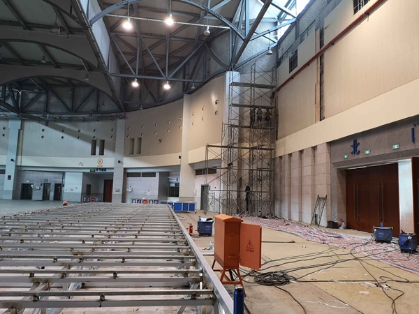 截至假期結束,項目現(xiàn)場三塊LED屏主體框架已基本完成,項目效果初現(xiàn);二樓會議大廳已完成頂部噴淋改造,舞臺燈具槽、吊頂及會場燈具正在安裝施工中,整體工程力保5月15日前順利交付使用。
