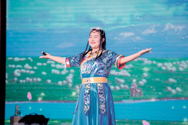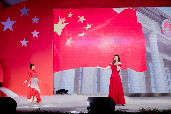 曾擔(dān)任全國(guó)總工會(huì)文工團(tuán)女中音獨(dú)唱演員化亭傾情獻(xiàn)唱《今天是你的生日,我的中國(guó)》。