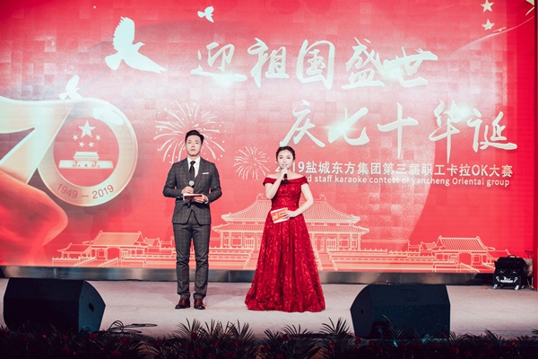 1011日,鹽城東方集團(tuán)“迎祖國(guó)盛世  慶七十華誕”2019第三屆職工卡拉OK大賽決賽在鹽城國(guó)際會(huì)展中心隆重舉行。集團(tuán)領(lǐng)導(dǎo)班子及各部門(mén)、子公司人員200余人歡聚一堂,共同慶祝新中國(guó)成立70周年。