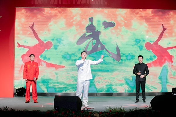 以說(shuō)唱結(jié)合的《中國(guó)功夫》營(yíng)造了極具氣勢(shì)的氛圍。薛清華、孟沖、董奕以濃重的中國(guó)風(fēng)演繹了中國(guó)功夫雄壯有力的英雄氣概。