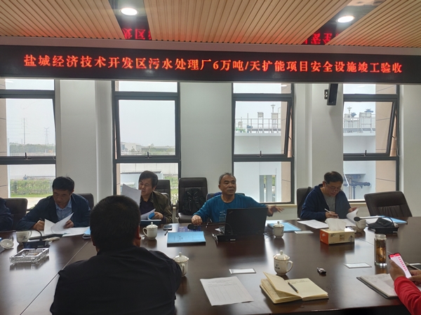 會上,沈效偉介紹了開發(fā)區(qū)污水處理廠6萬噸/天擴能工程的基本情況及安全設施的布置情況。隨后,江蘇健安安環(huán)工程評價咨詢有限公司相關負責人匯報了該項目的安全設施竣工驗收評價報告的編制情況,同時專家審閱了申報材料、圖紙,并查看了該項目現(xiàn)場安全設施的配備以及隱患整改情況,對江蘇東方水務有限公司的安全設施配備情況、安全隱患排查與整改情況給予了肯定。