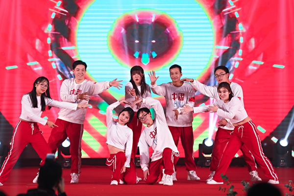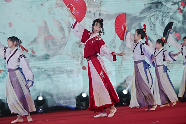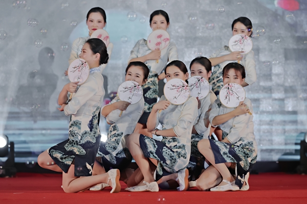 東方水務(wù)公司帶來的暖場舞——《浪漫櫻花舞蹈串燒》點燃全場。