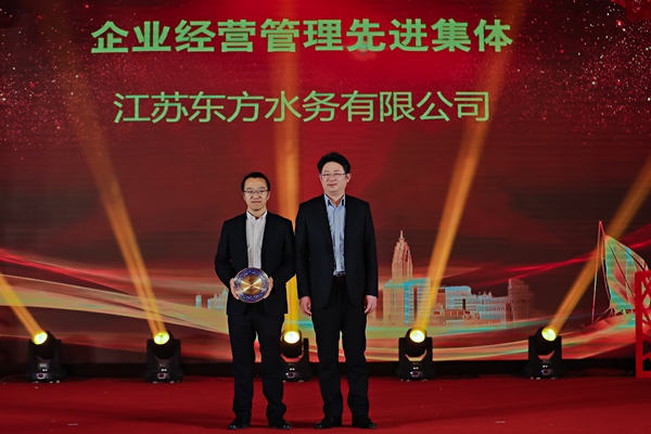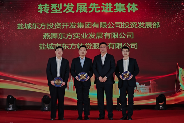 鹽城東方集團黨委委員、副總經(jīng)理吳將為“轉(zhuǎn)型發(fā)展先進集體”頒獎。