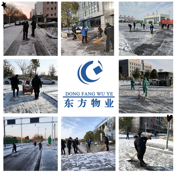 當天下午,東方物業(yè)各物管中心立即啟動《雨雪冰凍惡劣天氣應急預案》,切實增強防范意識、責任意識、安全意識,要求各物管中心加強監(jiān)測預警,紛紛做好應急準備。東方物業(yè)積極儲備掃帚、鐵鍬、雨衣雨披等必要工具的準備工作,并建立應急指揮機制,實行24小時值守、待崗制度,隨時保持通信暢通。同時,有針對性地開展專題培訓,切實提高應急保障能力。東方物業(yè)各物管中心合理部署,一部分抓好崗亭設置、門禁管理、小區(qū)封閉、消毒測溫等環(huán)節(jié),另一部分參與到清理積雪中來。