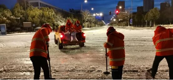 為應(yīng)對(duì)惡劣天氣的影響,東方安通公司迅速安排落實(shí)生產(chǎn)值班工作,加強(qiáng)值班力量,快速應(yīng)對(duì)惡劣天氣下的道路設(shè)施的異常情況并落實(shí)五大隊(duì)交辦的保障任務(wù)。風(fēng)雪之中,對(duì)道路路面進(jìn)行巡查,對(duì)信號(hào)燈、誘導(dǎo)屏、護(hù)欄等設(shè)施進(jìn)行排查,聯(lián)系落實(shí)搶修隊(duì)伍人員,人員調(diào)動(dòng)情況以及保障物資的準(zhǔn)備情況。排查活動(dòng)直至夜間雪停結(jié)束,次日凌晨,東方安通員工利用自身優(yōu)勢(shì),快速變身成為除雪大軍,開著工程車,揮著鐵鍬,走上街頭除雪撒鹽,保障行人安全通行。