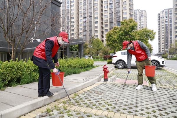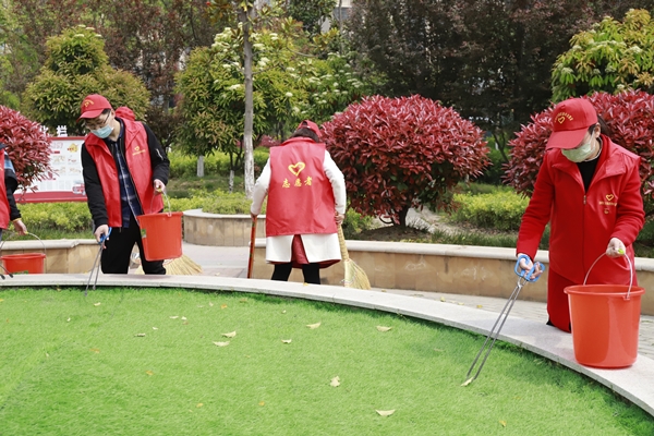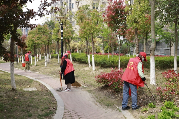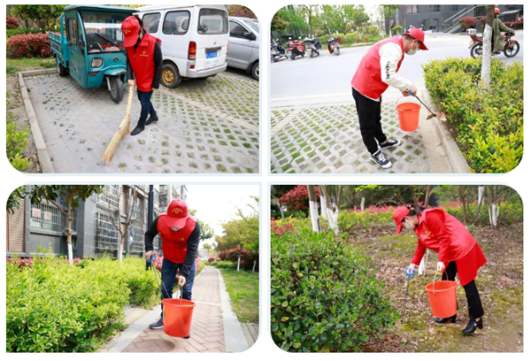活動中,志愿者們奮力爭先,流汗出力。有的拿著掃把清掃散落的樹葉,有的用鉗子清除綠化帶里的煙頭、紙屑、塑料袋垃圾、枯枝爛葉、雜草等,有的將電瓶車按序排放,有的擦拭社區(qū)宣傳欄。經(jīng)過2個小時的全面清掃后,徹底消除了衛(wèi)生死角、小區(qū)路面干凈整潔,營造了良好的氛圍,進(jìn)一步增強了社區(qū)居民文明意識、衛(wèi)生意識、環(huán)境意識。