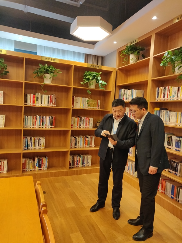 張振國(guó)向劉堅(jiān)一行介紹集團(tuán)閱覽室電子學(xué)習(xí)平臺(tái)