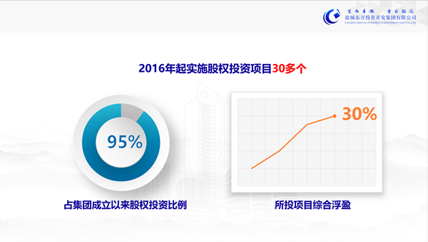 自2016年以來,鹽城東方集團(tuán)先后實(shí)施股權(quán)投資項(xiàng)目30多個(gè),占集團(tuán)成立以來的95%以上,所投項(xiàng)目綜合浮盈30%以上。這是股權(quán)投資市場(chǎng)復(fù)雜多變,金融監(jiān)管日益趨緊,國(guó)資審批更加規(guī)范的宏觀大環(huán)境下,主動(dòng)對(duì)標(biāo)“一流”,苦練內(nèi)功,建章立制,促進(jìn)了所投項(xiàng)目的穩(wěn)健收益。