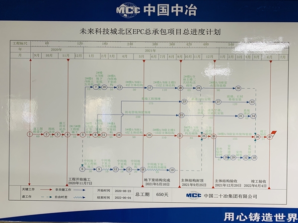 10月份樁機(jī)進(jìn)場組裝、10月底完成施工報(bào)審、11月5日取得施工許可證、11月6日樁基工程正式施工……未來科技城北區(qū)項(xiàng)目始終處于緊鑼密鼓、一著不讓的高效率施工節(jié)奏,這歸功于建設(shè)方和總承包單位高瞻遠(yuǎn)矚、提前謀劃,在工程尚未全面啟動(dòng)前就科學(xué)制定了《未來科技城北區(qū)EPC總承包項(xiàng)目總進(jìn)度計(jì)劃表》,明確總工期為650天,并將項(xiàng)目建設(shè)目標(biāo)分解到季、進(jìn)度安排到月、措施細(xì)化到周到天;隨著工程建設(shè)不斷深入,還將針對影響施工進(jìn)度的痛點(diǎn)和難點(diǎn)集中研討,拿出優(yōu)化方案并適時(shí)調(diào)整施工方案和進(jìn)度計(jì)劃。