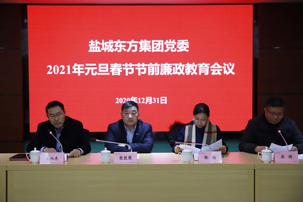 2021年元旦、春節(jié)將至,為推進(jìn)鹽城東方集團(tuán)全體黨員干部嚴(yán)格落實(shí)中央八項(xiàng)規(guī)定精神,持之以恒糾治“四風(fēng)”,營(yíng)造風(fēng)清氣正、歡樂(lè)祥和的節(jié)日氛圍,12月31日上午,區(qū)紀(jì)工委監(jiān)察工委第二紀(jì)檢監(jiān)察室特地到鹽城東方集團(tuán)召開(kāi)2021年元旦春節(jié)節(jié)前廉政教育專場(chǎng)會(huì)議。會(huì)議由集團(tuán)黨委副書(shū)記、副董事長(zhǎng)、總經(jīng)理王旭東主持。