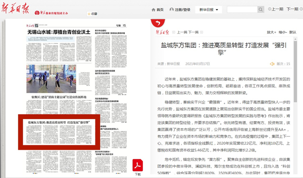 3月17日,《新華日報(bào)》第15版刊發(fā)《鹽城東方集團(tuán):推進(jìn)高質(zhì)量轉(zhuǎn)型 打造發(fā)展“強(qiáng)引擎”》,關(guān)注報(bào)道鹽城東方集團(tuán)近年來,緊緊圍繞高質(zhì)量發(fā)展要求,攻堅(jiān)克難、勇毅篤行,在助力鹽城經(jīng)開區(qū)發(fā)展的同時,實(shí)現(xiàn)華麗轉(zhuǎn)身的高光時刻。