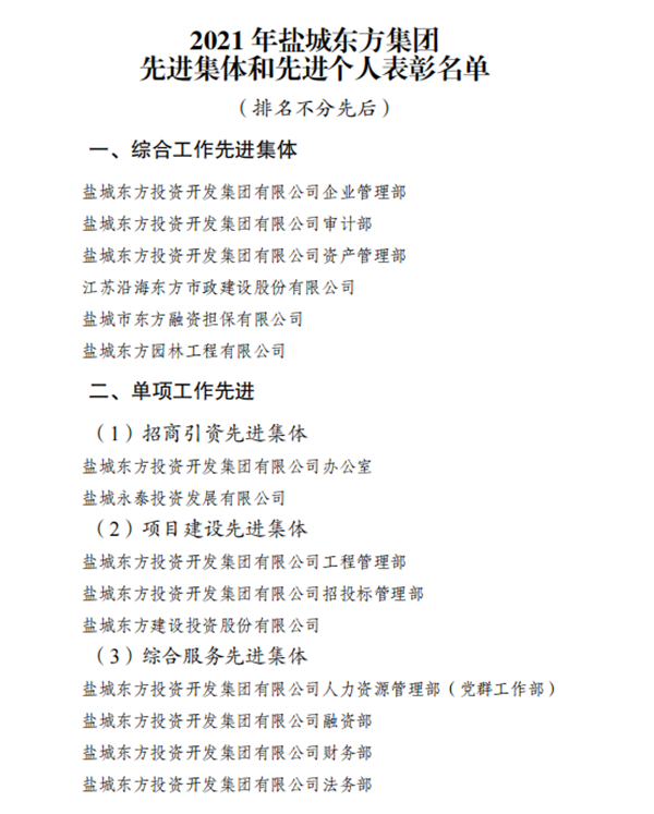 這一年,我們主動作為、加強宣傳,獲得了更多的社會認(rèn)可,為集團創(chuàng)造一流國企增添了強勁動能。2021年11月20日,在城投之家等權(quán)威機構(gòu)發(fā)布的《江蘇地方政府投融資平臺轉(zhuǎn)型發(fā)展研究報告》中闡明,鹽城東方集團轉(zhuǎn)型業(yè)績作為鹽城唯一一家國企,首次躋身全省地級市投融資平臺榜單前十,《新華日報》《鹽阜大眾報》《鹽城工作》等主流媒體全年推送近200篇報道,傳遞東方好聲音。