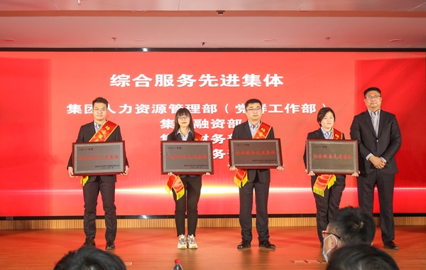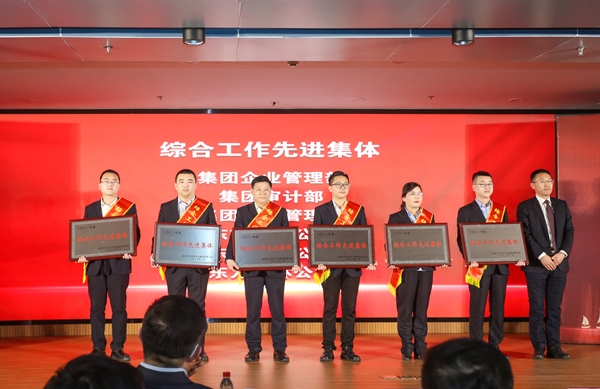 集團黨委書記、董事長、總經(jīng)理王旭東為綜合工作先進(jìn)集體頒獎。