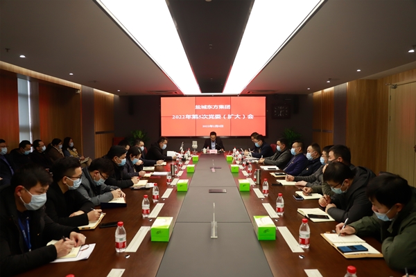2月8日下午,鹽城東方集團在集團七樓1號會議室召開黨委(擴大)會議,集團黨委書記、董事長、總經(jīng)理王旭東主持會議并講話。集團黨委領導班子成員出席會議,集團總會計師列席會議,中層以上人員、子公司經(jīng)營層參加會議。