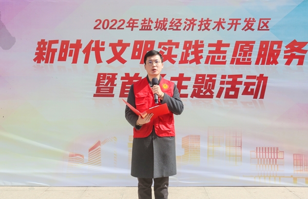 集團(tuán)志愿者周毅宣讀了鹽城經(jīng)濟(jì)技術(shù)開(kāi)發(fā)區(qū)新時(shí)代文明實(shí)踐志愿服務(wù)季倡議書(shū)。