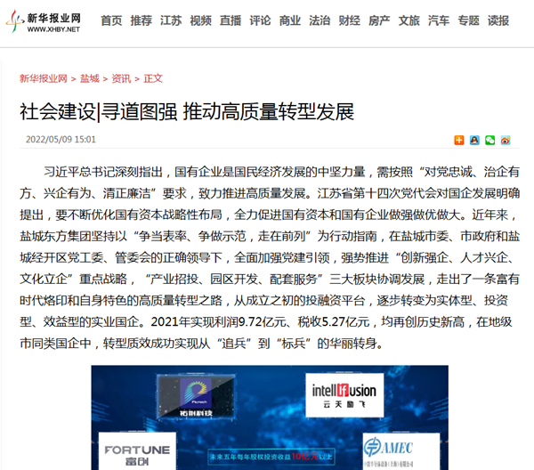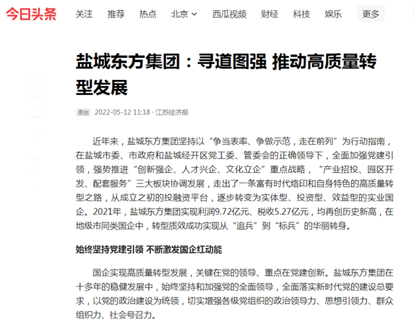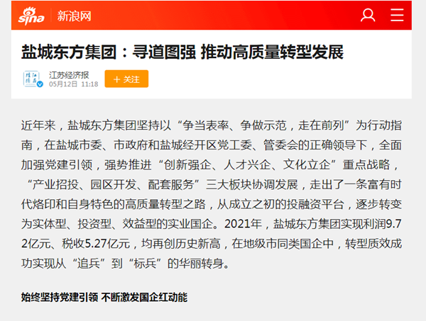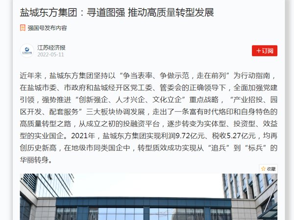 日前,多家主流媒體相繼轉(zhuǎn)載,聚焦鹽城東方集團(tuán)高質(zhì)量發(fā)展成果,分享國企高質(zhì)量轉(zhuǎn)型發(fā)展的經(jīng)驗和路徑。