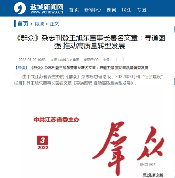 近日,《群眾》雜志將鹽城東方集團(tuán),作為國企典型進(jìn)行報道,發(fā)表王旭東董事長署名文章——尋道圖強(qiáng),推動高質(zhì)量轉(zhuǎn)型發(fā)展,關(guān)注鹽城東方集團(tuán)堅持黨建引領(lǐng),秉持初心勇改革創(chuàng)發(fā)展,跑出高質(zhì)量發(fā)展加速度,受到了業(yè)內(nèi)廣泛關(guān)注。