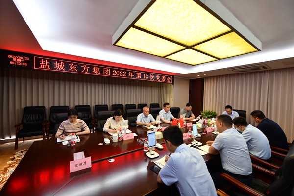 6月20日,鹽城東方集團(tuán)黨委在1121會(huì)議室召開黨委委員會(huì)議,傳達(dá)上級(jí)會(huì)議精神和文件精神,研究部署集團(tuán)近期重點(diǎn)工作。集團(tuán)黨委書記、董事長(zhǎng)、總經(jīng)理王旭東主持會(huì)議并講話。集團(tuán)黨委領(lǐng)導(dǎo)班子成員參加會(huì)議,集團(tuán)總會(huì)計(jì)師列席會(huì)議。