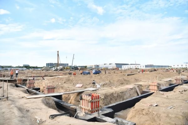 項目占地面積約278.30畝,總建筑面積為12.3萬平方米,規(guī)劃建設(shè)兩棟廠房、兩棟庫房及相關(guān)附屬配套,其中一期建設(shè)除一棟廠房、一棟庫房外的7.4萬平方米,總投資約2.5億元。目前項目樁基工程已基本完成,正在進行樁基承載力檢測、現(xiàn)場道路灰土層施工、臨時設(shè)施搭設(shè)等工作。計劃10月底完工,具備設(shè)備進場安裝條件。