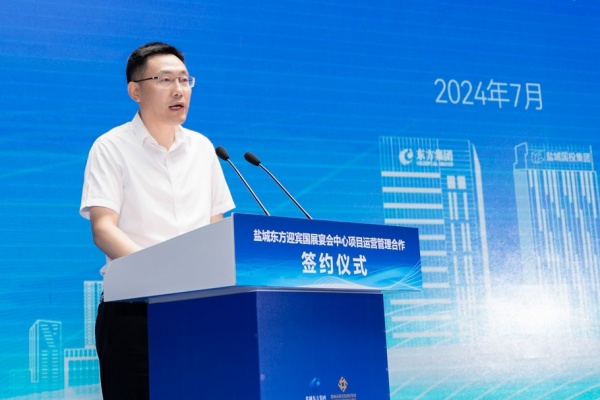 王旭東致辭:近年來(lái),鹽城東方集團(tuán)以“繡花功夫”運(yùn)營(yíng)管理會(huì)展中心,持續(xù)提升場(chǎng)館使用質(zhì)效,積極創(chuàng)樹(shù)會(huì)展品牌形象。今年以來(lái),集團(tuán)更是將攻堅(jiān)突破會(huì)展經(jīng)濟(jì)列為全年“一、三、六”工程中的“三項(xiàng)重點(diǎn)”之一,找準(zhǔn)“會(huì)議、展覽、賽事、宴會(huì)”四大功能定位,并把建設(shè)宴會(huì)中心、布局宴會(huì)產(chǎn)業(yè),作為全面提升會(huì)展中心市場(chǎng)化經(jīng)營(yíng)效能的主要發(fā)力點(diǎn)和重要增長(zhǎng)極。為謀求高質(zhì)量發(fā)展,鹽城東方集團(tuán)與鹽城國(guó)投集團(tuán)強(qiáng)強(qiáng)合作,與國(guó)投旗下運(yùn)營(yíng)經(jīng)驗(yàn)豐富的市迎賓館酒店集團(tuán)反復(fù)交流、真誠(chéng)溝通,就項(xiàng)目委托運(yùn)營(yíng)管理達(dá)成合作共識(shí)。他希望雙方精心規(guī)劃、精致建設(shè)、精細(xì)管理、精美呈現(xiàn),共同將鹽城東方迎賓國(guó)展宴會(huì)中心打造成為城東乃至全市高端宴會(huì)市場(chǎng)的璀璨新星,合力為鹽城經(jīng)開(kāi)區(qū)打造一處獨(dú)特的城市“新地標(biāo)”,增添一道靚麗的城市“風(fēng)景線”。