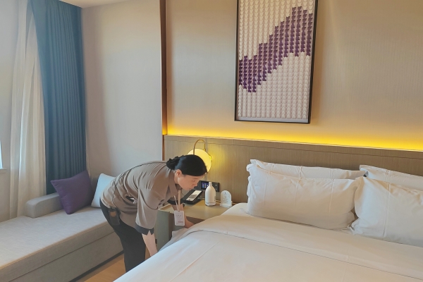 面對(duì)持續(xù)滿房的狀態(tài),酒店各部門高效協(xié)同,確保了客人入住與離店的順暢體驗(yàn),為八方賓朋提供了整潔舒適的入住環(huán)境。